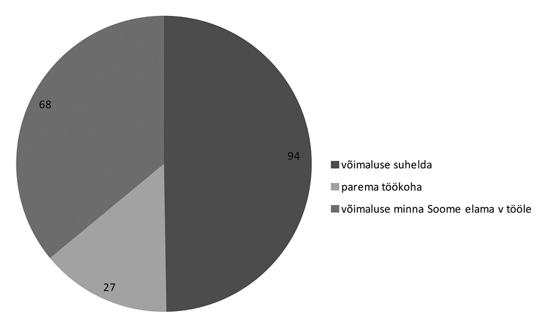 Seega hindavad pooled vastanutest soome keele oskuse peamiseks plussiks just suhtlemise võimalust soomlastega nende emakeeles. Teine pool peab oluliseks parema töökoha leidmise võimalust kas siis Eestis või Soomes. Piltliku ülevaate vastustest saab jooniselt 8.