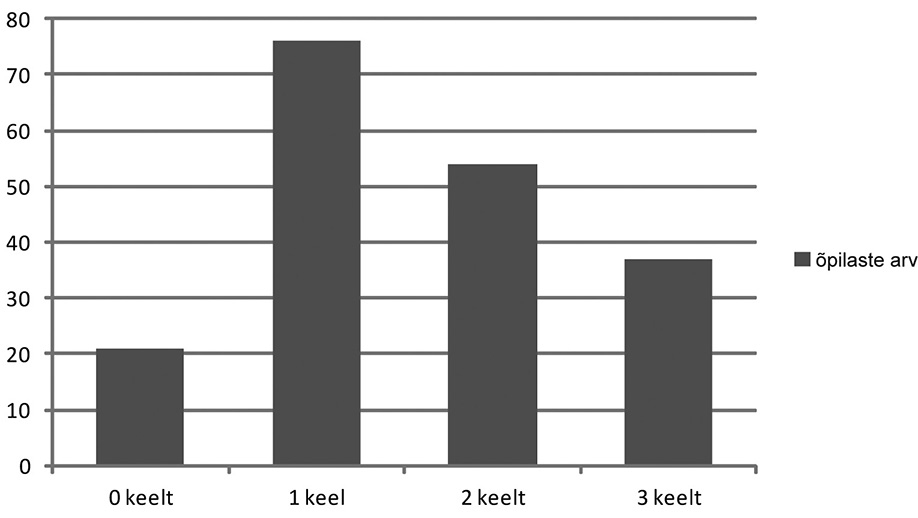 Vastustes nimetas 37 õpilast kolme erinevat keelt, 54 kaht keelt, 76 piirdus ühe keele nimetamisega ning 21 vastajat ei nimetanud ühtegi konkreetset keelt (vt joonist 9).