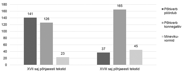 Joonis 2. Põhiverbi vorm XVII–XVIII sajandi põhjaeesti tekstides.(5)