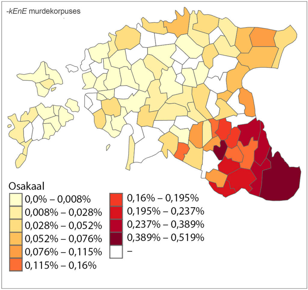 Joonis 2. Sufiksi –kEnE variandid nende levikupiirkondade hulga järgi.