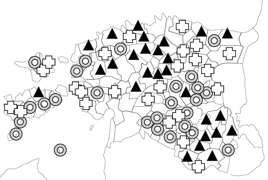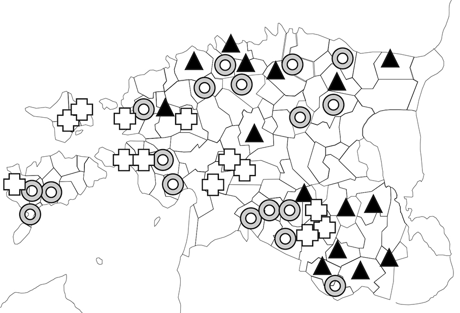 Huvitavamad mustrid tekivad, kui kõrvutada eri ajapunktide keelevalikut kihelkondlikus vaates (vt kaarte 1–4, millel eestikeelse kirikumeetrikaga kihelkondi tähistab kolmnurk